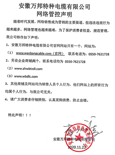 鄭重聲明:安徽萬邦特種電纜有限公司官方網站為:www_wanbangcable_com.pnqttp.cn,除此之外無任何子網站或合作網站,其余均為假冒偽劣。電話:0550-7621728 13485756353 地 址:安徽省天長市滁州高新技術產業開發區經四路29號